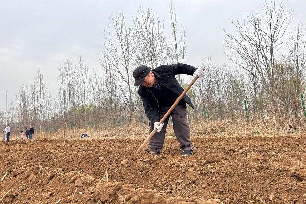 “先把自家的地壟耙起來(lái),然后把地摟平!”在種植基地,不時(shí)傳來(lái)李懷生指導大家的聲音,各單位積極響應,熱火朝天地掄起耙子等農具,在各自地塊開(kāi)始了種植前的準備工作。當李懷生請來(lái)種植基地的技術(shù)人員時(shí),大家紛紛上前認真聽(tīng)講。技術(shù)人員向大家詳細講解了針對不同種子如何掌握挖坑深度、種植方式、覆膜等需要注意的事項后,大家個(gè)個(gè)干勁十足,全身心地投入到播種當中。種植完成后,大家打開(kāi)澆灌的水龍頭,咕咕的水流進(jìn)了耙好的一塊塊地畦里,這一刻,大家共同的期待一定是在這片土地上,能夠看到這些綠色蔬菜的成長(cháng)與豐收。