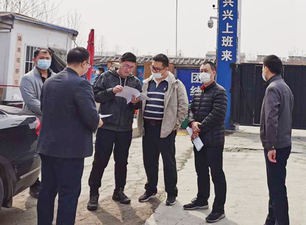 3月31日上午,石家莊市高新區復工復產(chǎn)督導組吳英蘭、張申一行五人到三分公司瑞鶴醫療項目檢查工作。