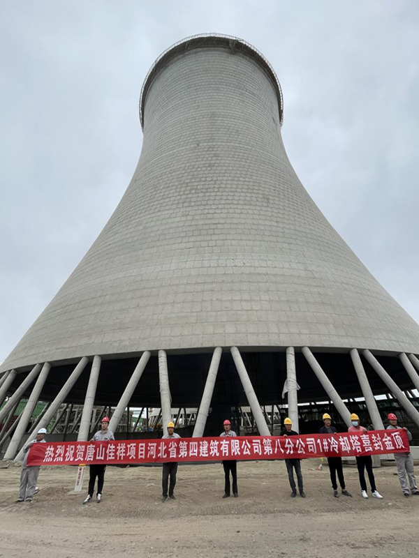 八分公司承建唐山佳祥焦電項目1#冷卻塔喜封金頂