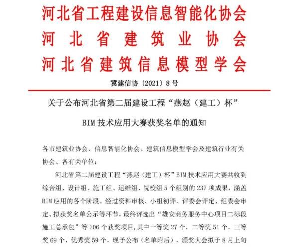 公司奪得河北省第二屆“燕趙(建工)杯”BIM技術(shù)應用大賽7項大獎