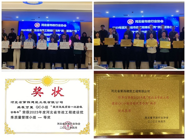 4月18日-20日,2023年度河北省市政工程建設質(zhì)量管理小組成果交流會(huì )在正定召開(kāi),第七分公司鵬程萬(wàn)里QC小組發(fā)布的《提高直線(xiàn)頂管一次驗收合格率》成果獲得一等獎,公司榮獲2023年度“河北省市政工程建設QC小組活動(dòng)優(yōu)秀企業(yè)”榮譽(yù)。