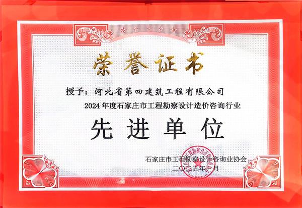公司設計院連續三年獲得石家莊市工程勘察設計造價(jià)咨詢(xún)行業(yè)先進(jìn)單位榮譽(yù)稱(chēng)號