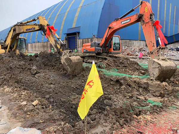 5月2日和3日連續降雨,打樁后產(chǎn)生的淤泥經(jīng)大雨沖刷散布現場(chǎng)各處,雨后項目全體人員開(kāi)始清淤工作,因環(huán)保要求白天不宜外運出場(chǎng),管理人員便夜間加班“作戰”,爭分奪秒為后續工作創(chuàng )造工作面。白天平整場(chǎng)地、夜間倒運淤泥,經(jīng)過(guò)項目全體人員的連日奮戰,使項目具備了開(kāi)工條件。